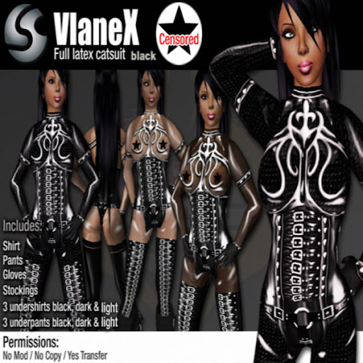 Available for now : a cool corset (not featured, sorry), a cool Eye of Ra necklace, and a cool latex outfit in black and neon green.