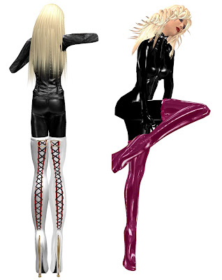 The Prey boots are an intricate system, available in leather and latex, in four different shapes with three different addons, and a color HUD to manage the whole thing.