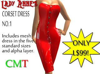 The dress top shows a corset front with eye and hook closing, and laces down the front of the skirt part. That would make that dress a strict bondage item in RL.