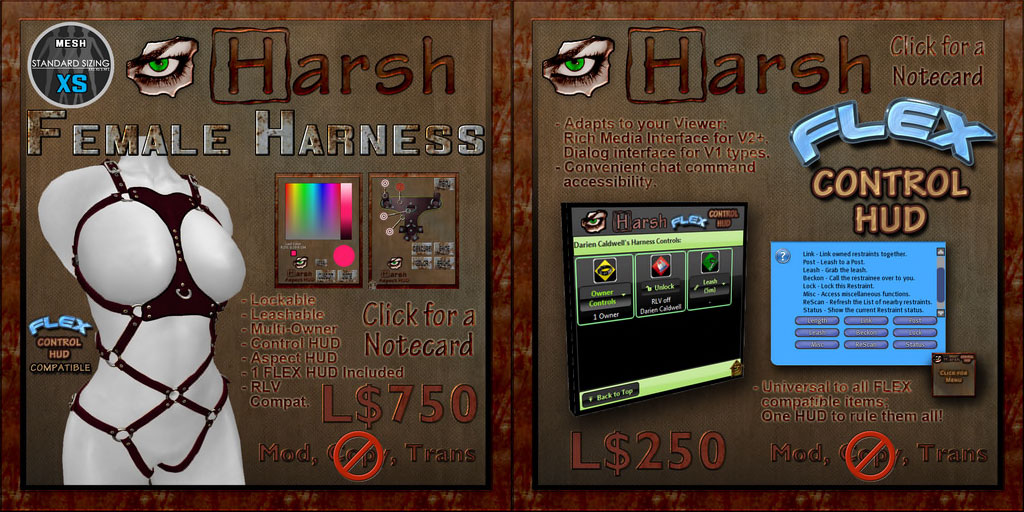 This is a trapping RLV toy in particular, so it’ll be well suited for public areas and dungeons - a “public” mode allows anyone to use the settings, not just the owner.