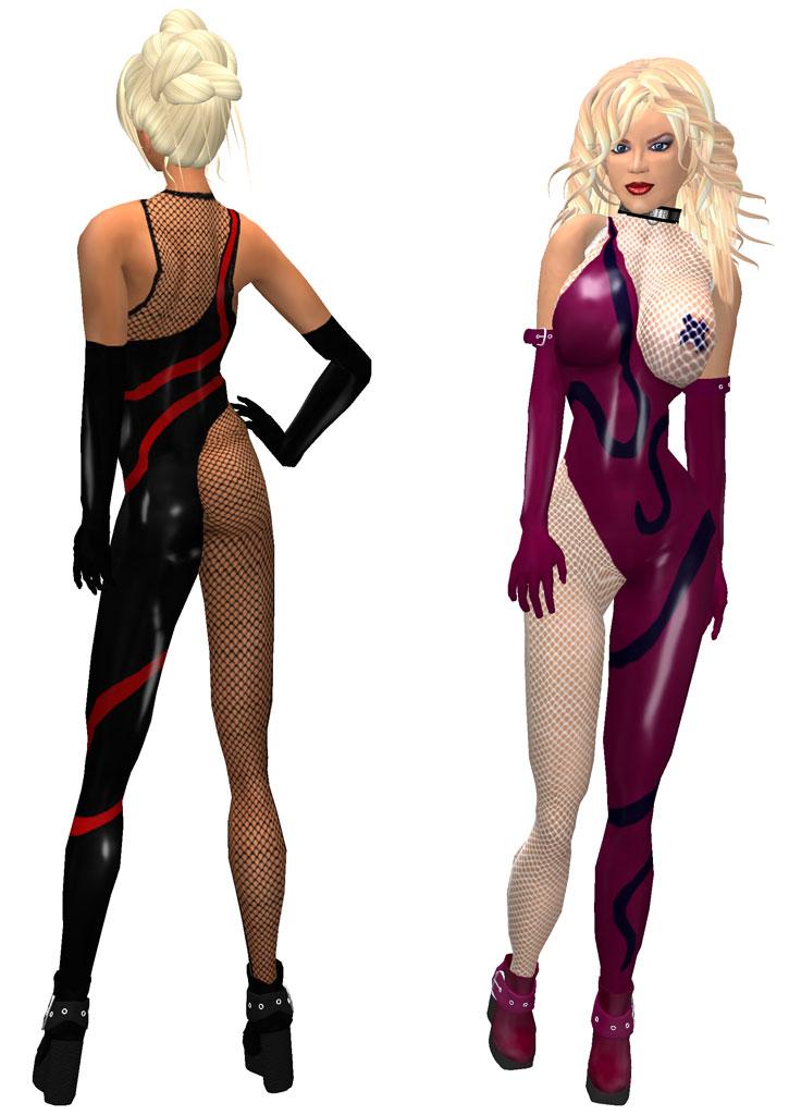 A new latex designer tonight, Evelyn Stromfield from LieWen has a few innovative catsuits in her shop including this Half 'n Half catsuit.