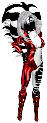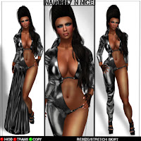 So, Hikari is wearing the Naughty N Nice outfit called Bound To You, sans long skirt, and the awesomely shiny (really, they glow!) Zarz Liquid Latex Stiletto Boots.