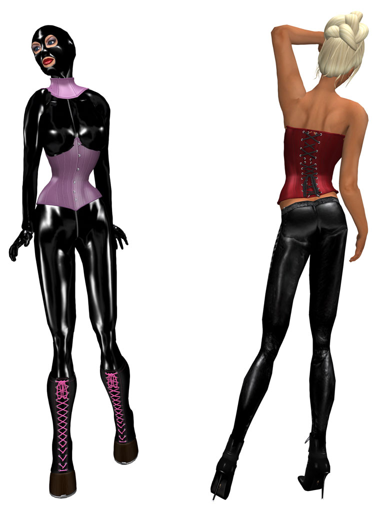 Great looking corsets - have a good look at the lacing! - she spent a few hours on them, in fashionable leather colors.
